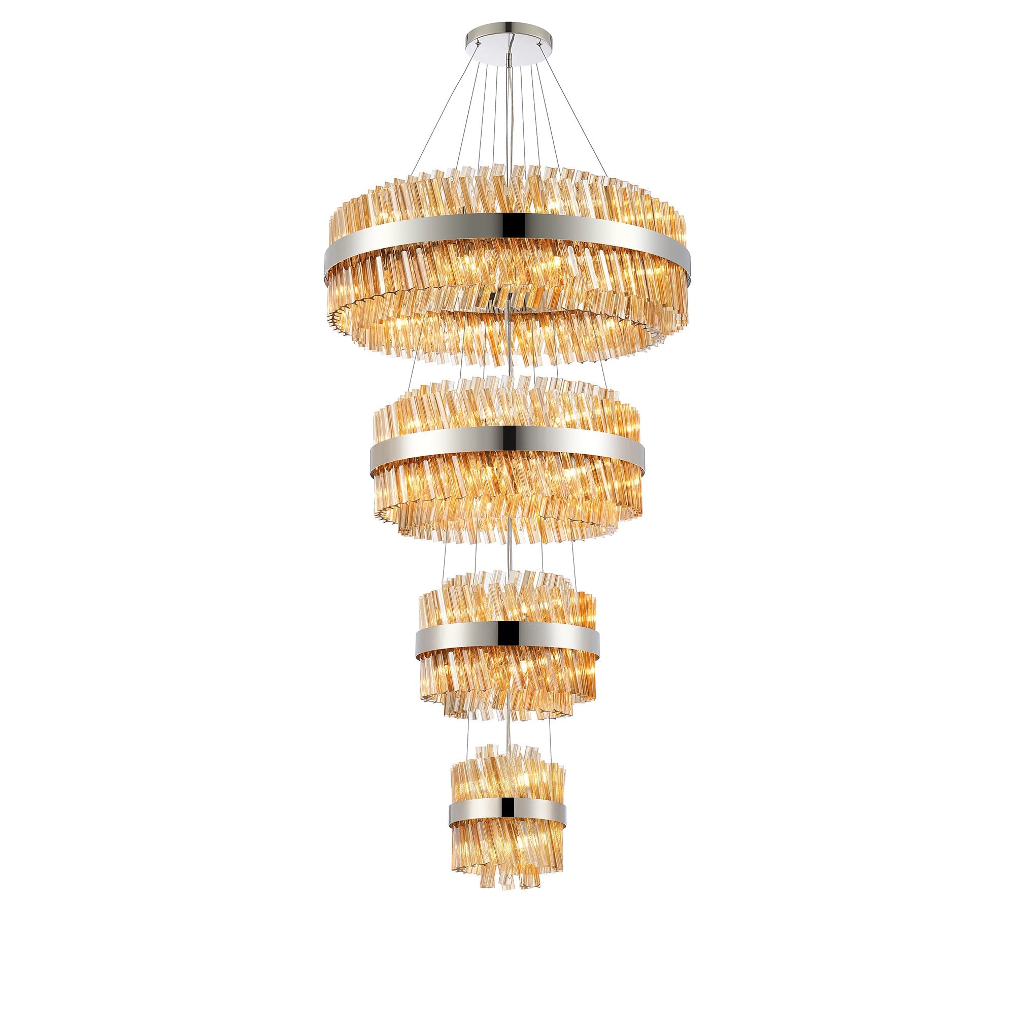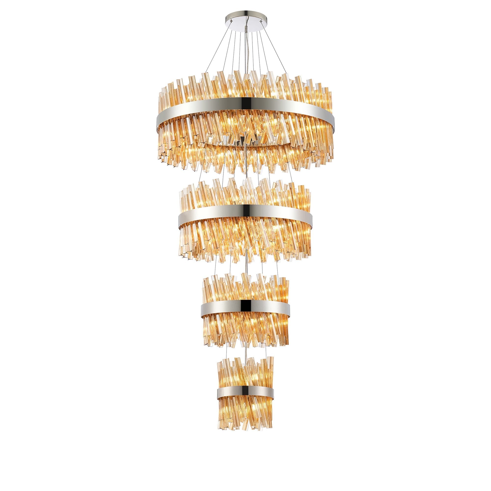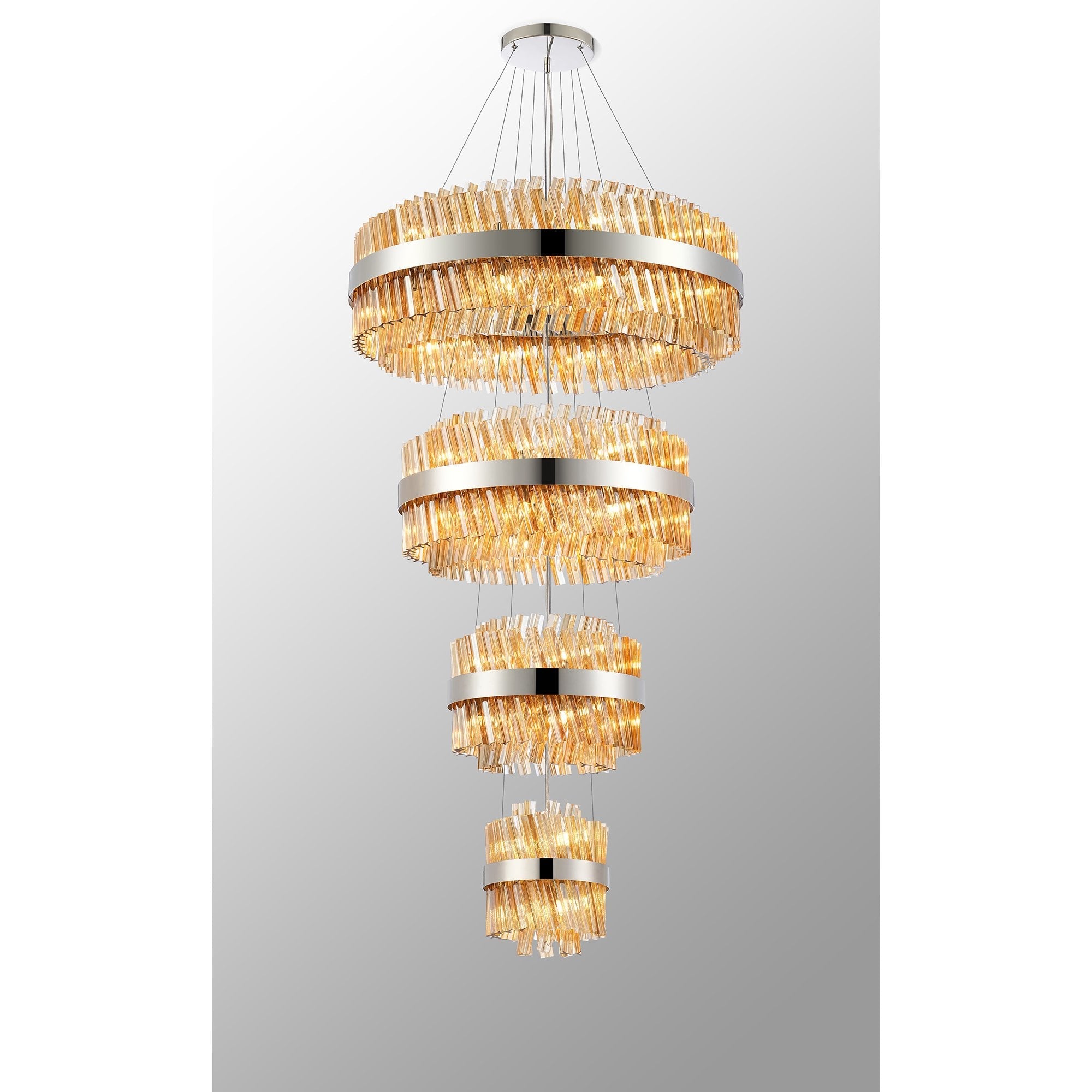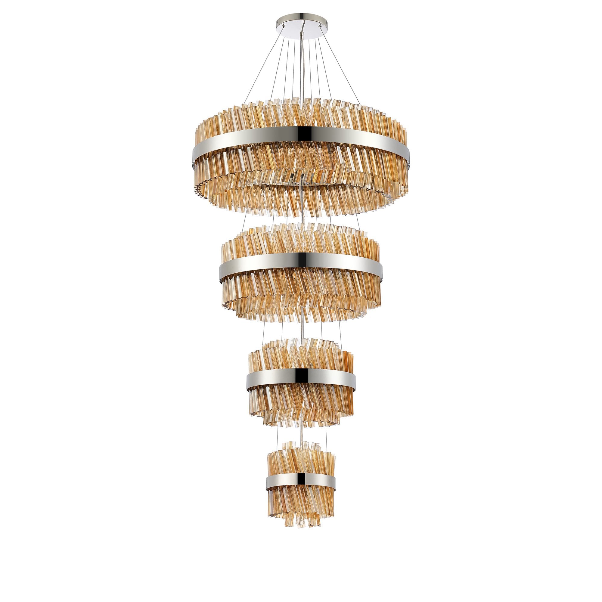 Alia 4 Tier 58 Light Polished Nickel & Amber Glass Pendant