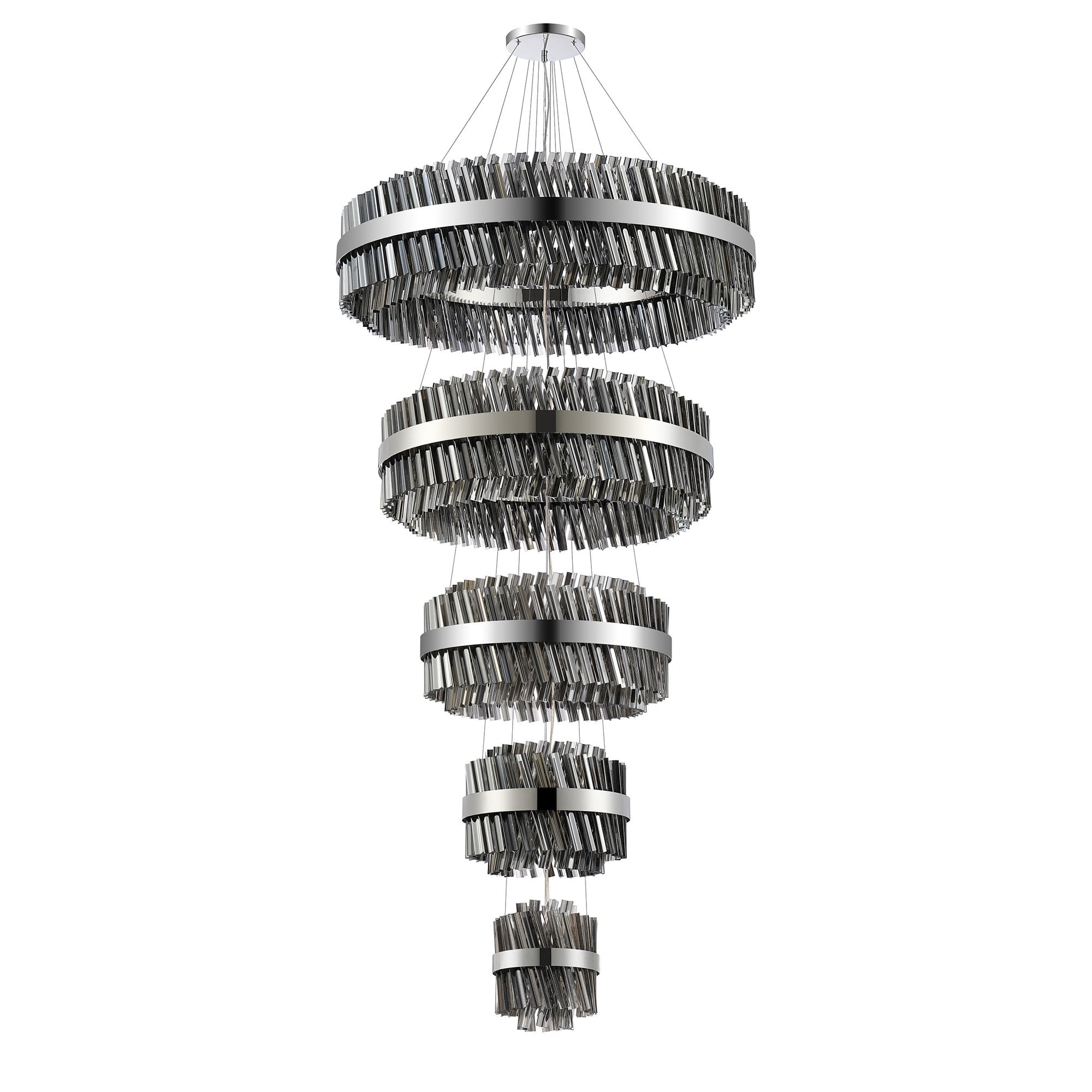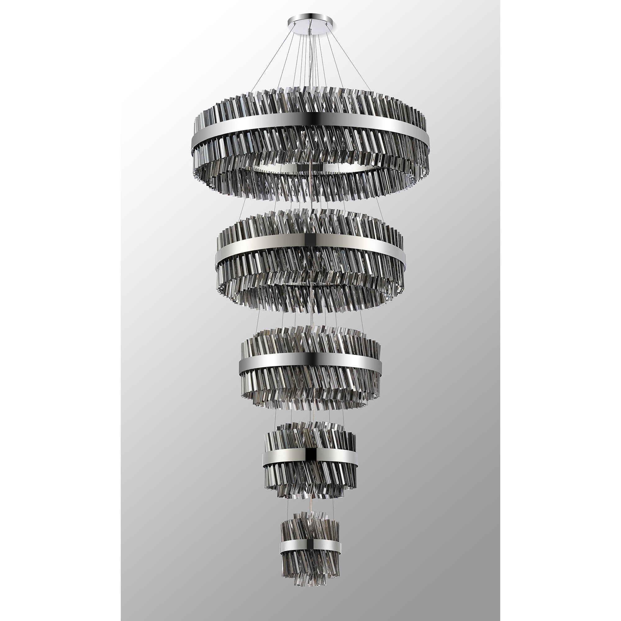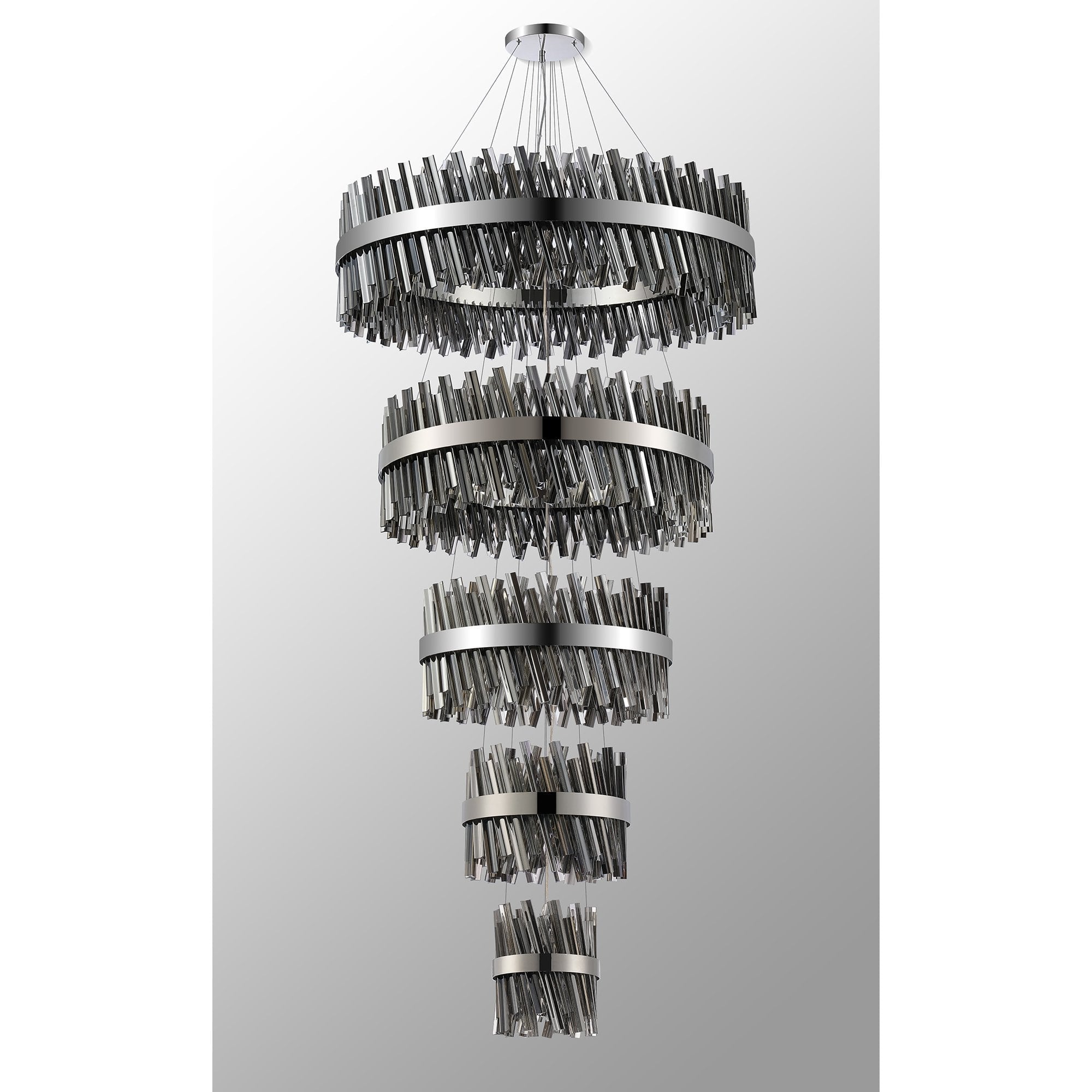 Alia 5 Tier 90 Light Polished Nickel & Smoked Glass Pendant