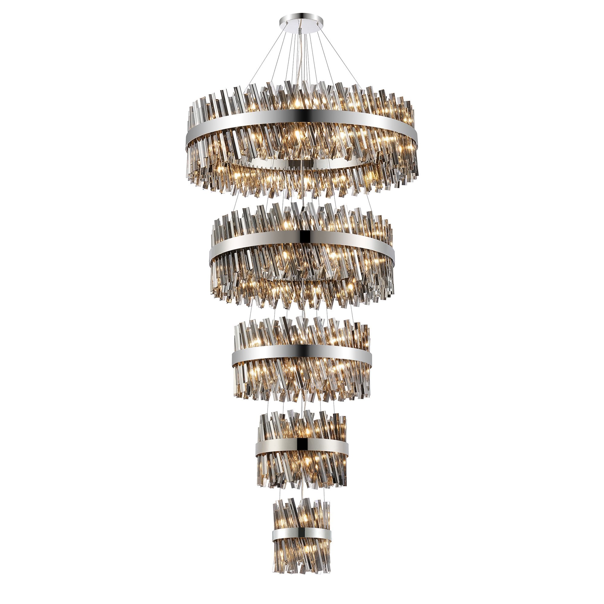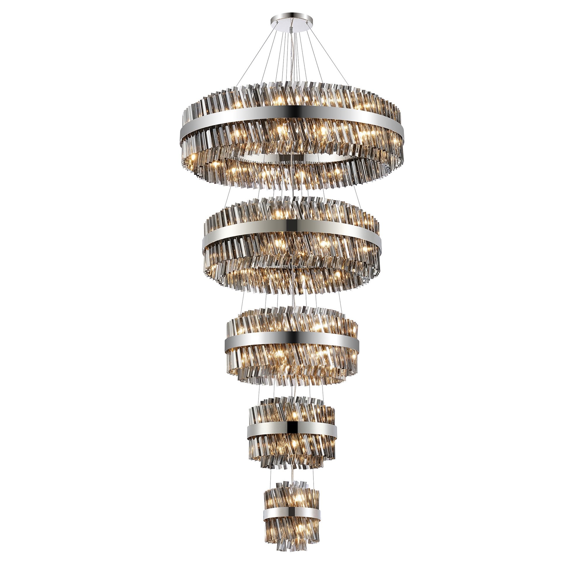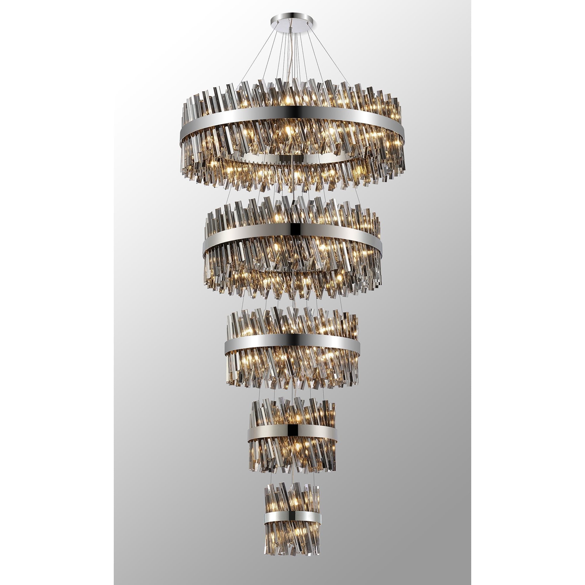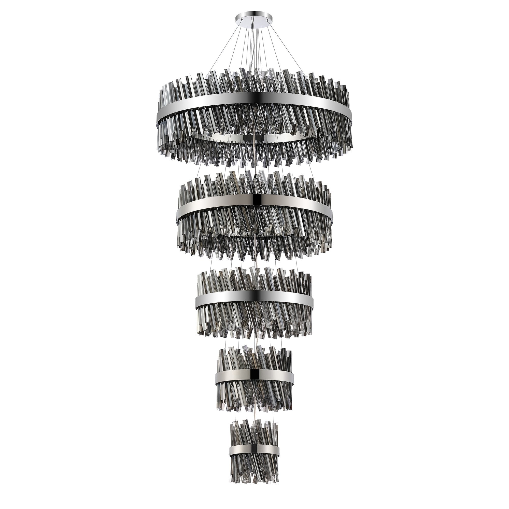 Alia 5 Tier 90 Light Polished Nickel & Smoked Glass Pendant