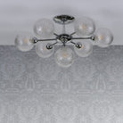 With clear textured glass, the globe shades of the elegant Atherton ceiling light from Laura Ashley partially conceal the light bulbs and cast a sparkly light. Featuring a magnificent seven lights, it has a luxurious contemporary look and, with a nod to the Space Age, great mid-century style.