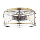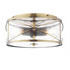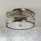 Beckworth 3 Light Antique Brass & Glass Flush Ceiling Light