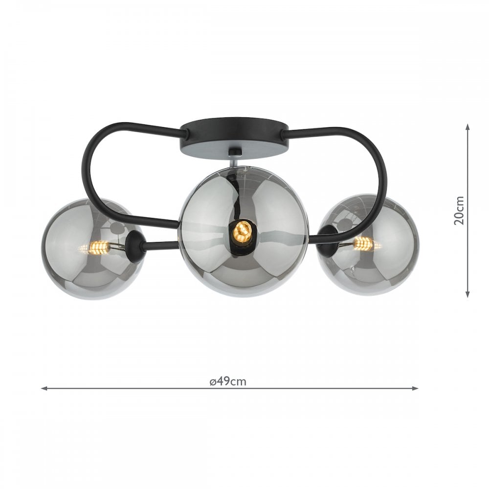 Eissa 3 Light Semi Flush Matt Black Smoked Glass