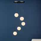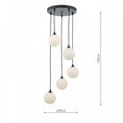 Federico Matte Black 5 Light Cluster Pendant with Opal Glass Shades