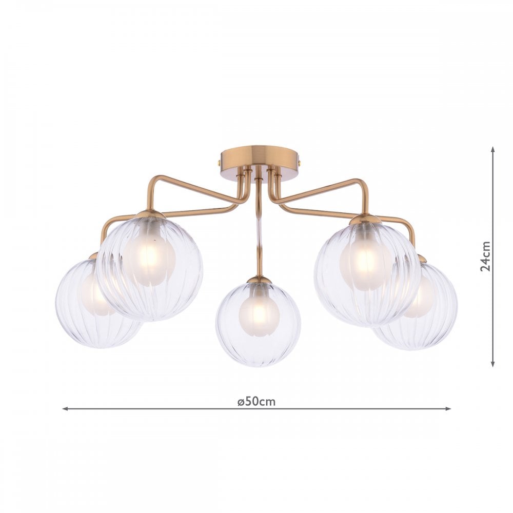 The Feya 5 Light Semi-Flush Antique Bronze & Clear/Opal Glass is a beautiful semi-flush fitting with duplex glass shades combining a ribbed clear glass outer, with opal inner to reduce glare. The simple antique bronze frame suits low ceiling rooms and allows the glass to really shine. The Feya semi-flush is suitable for an entryway, dining room or anywhere a little style is needed.