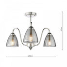 Glynis Semi-Flush Light Polished Nickel & Smoked Ribbed Glass 3 Light