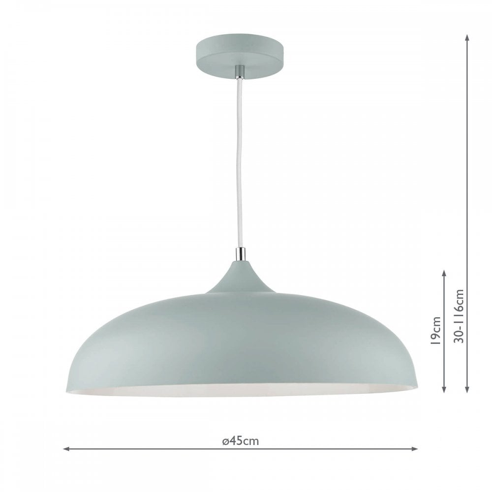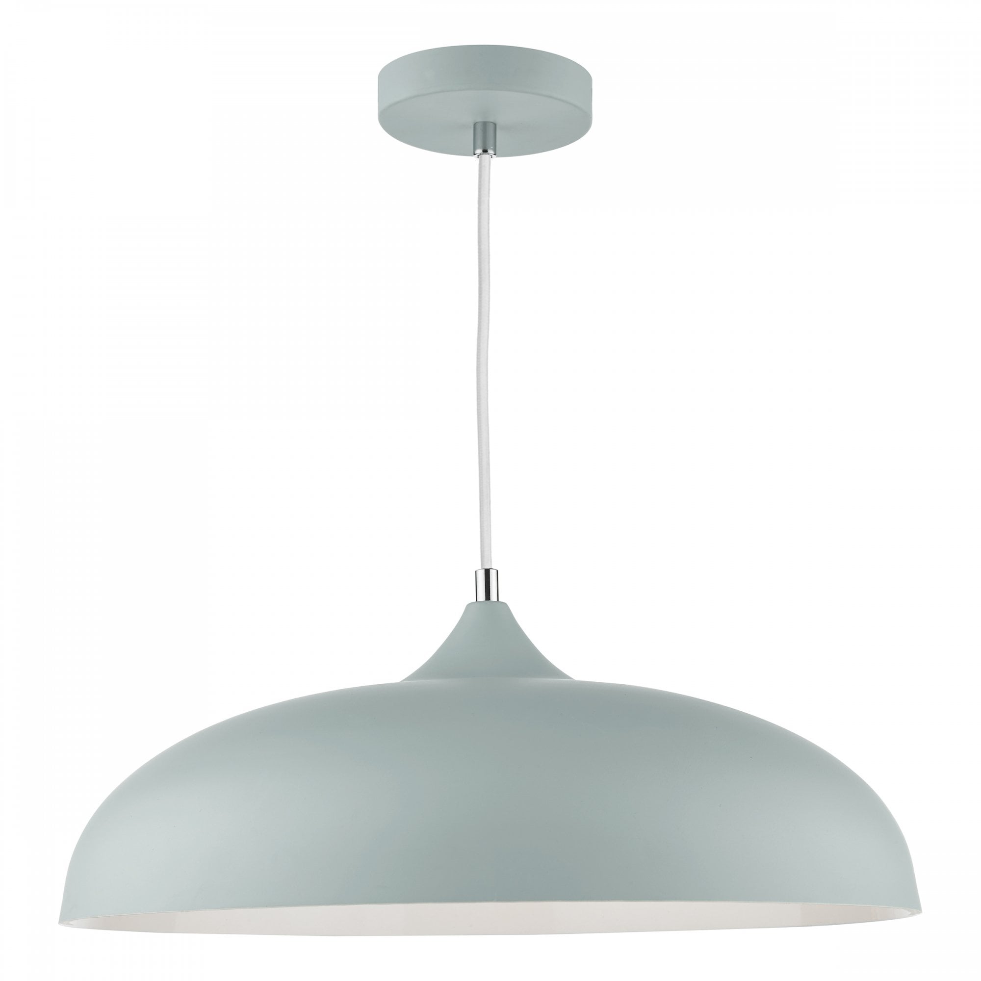 Kaelan - a clean lined pendant with a graceful shallow curve and simple cable suspension. In cool matt grey with a white inner and suspended from a clear cable this modern style pendant casts a great light.