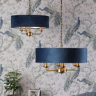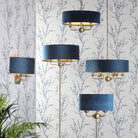 - Laura Ashley Sorrento 3 Light Pendant Antique Brass & Blue Shade LA3756209-Q