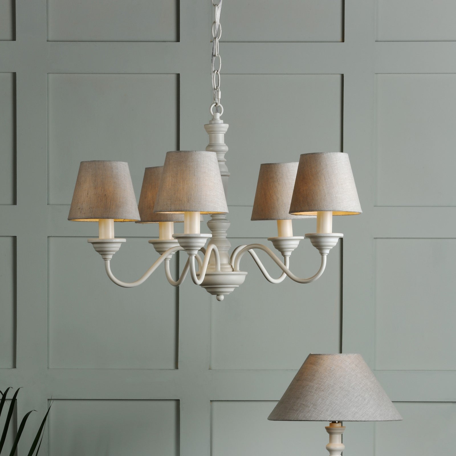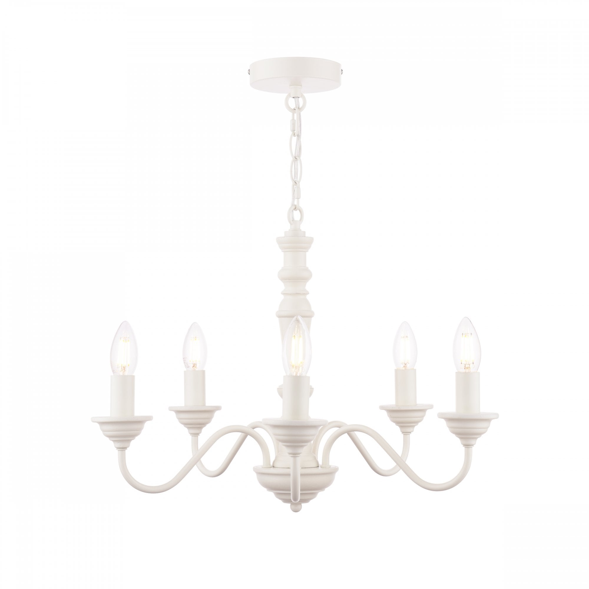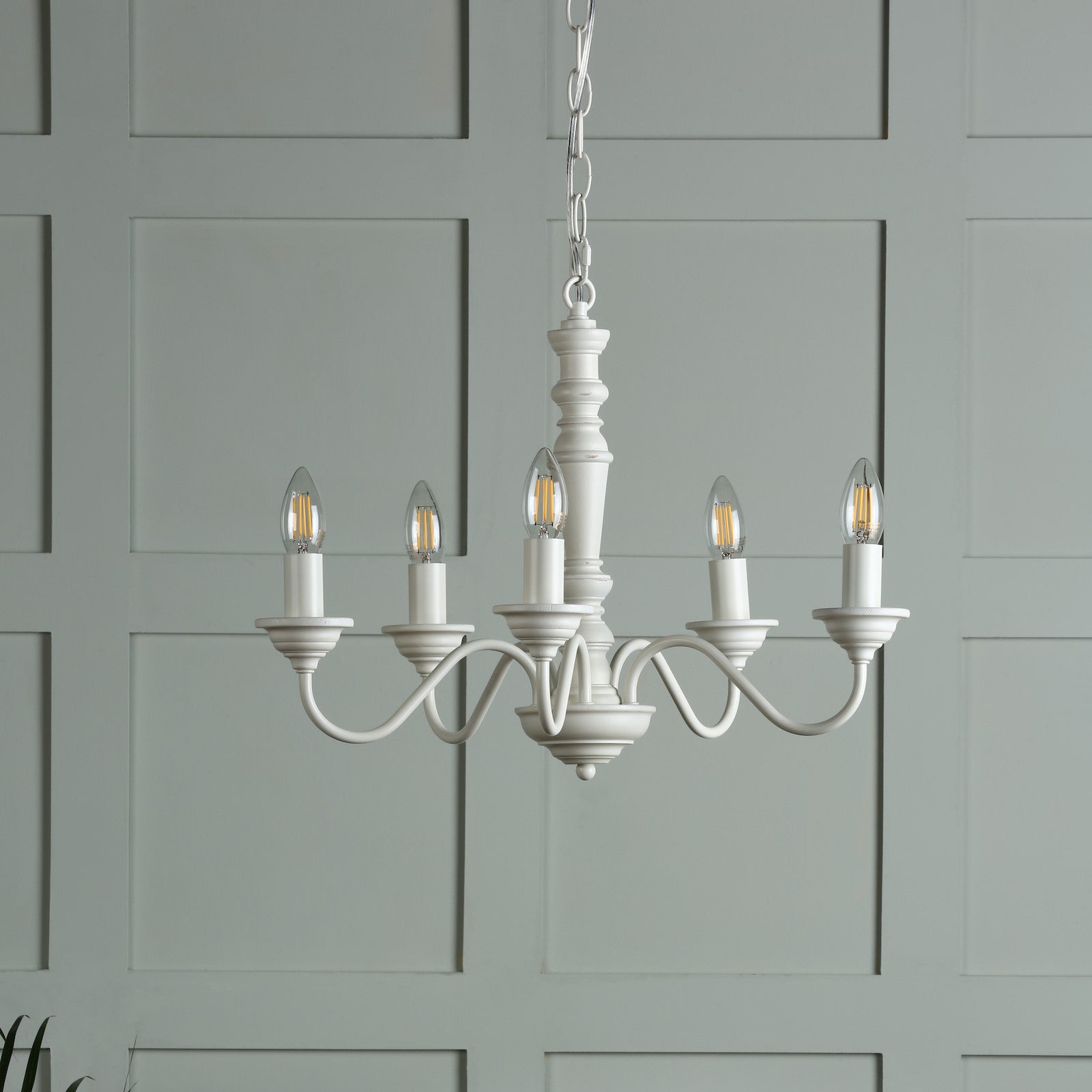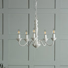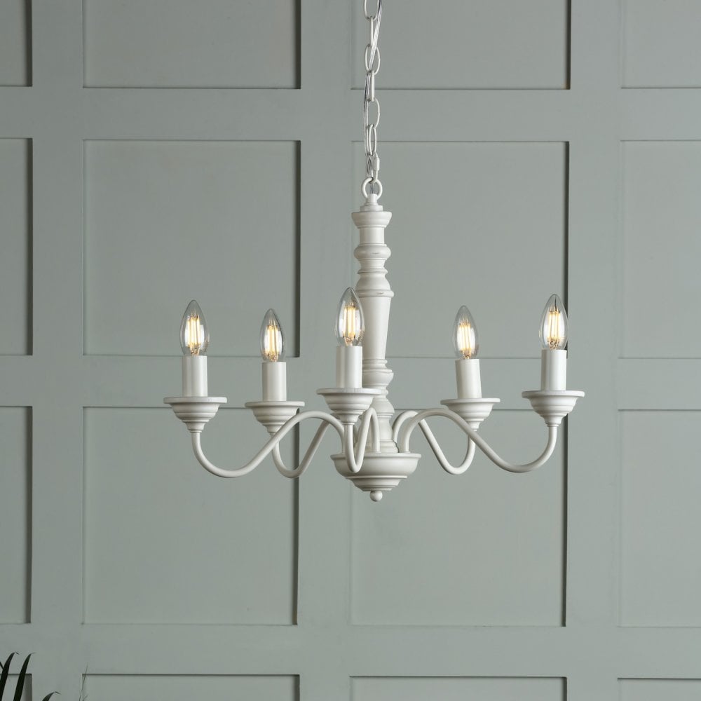 The elegantly proportioned Tate armed pendant ceiling light from Laura Ashley is the epitome of country charm. The five lights on this chandelier are displayed on curved arms around a simple wooden spindle column. A beautiful contemporary matt painted finish in white adds to the Tate’s appeal and helps it tell the country story.