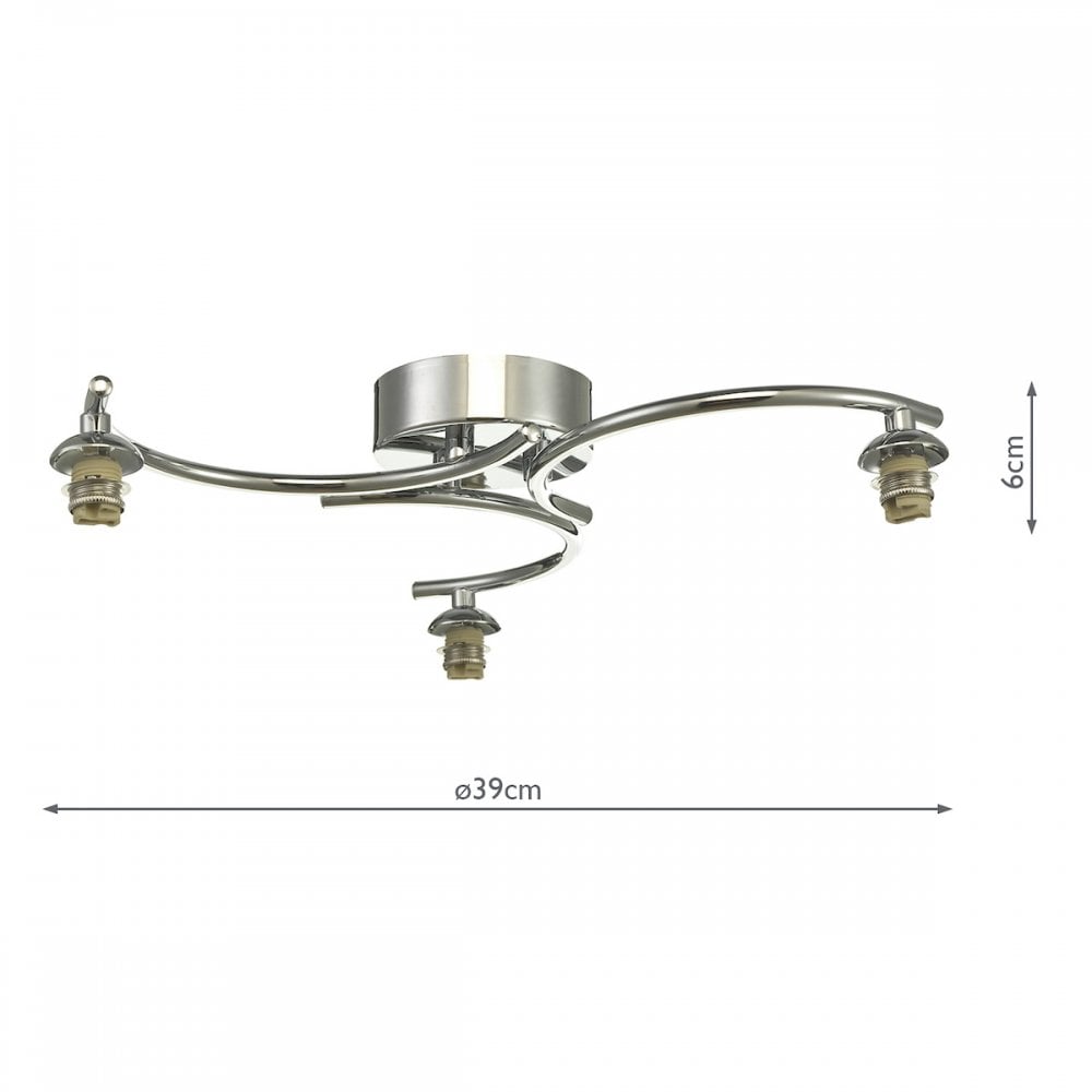 The NAKITA 3 Light Semi Flush ceiling light is finished with a polished chrome frame with 3 heavy clear glass shades surrounding the G9 lamps. The decorative glass shade has a dimpled motif. The graceful curving arms give a generous diameter of 50cm which ensures the light spill covers a larger area and a height of 16cm make this a great choice for low ceiling areas.