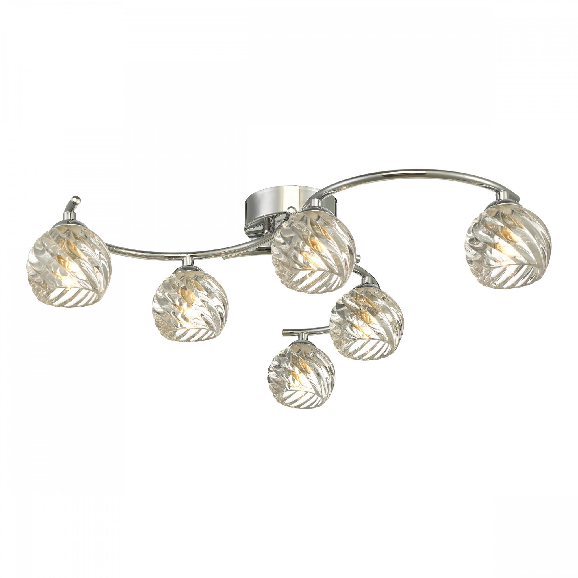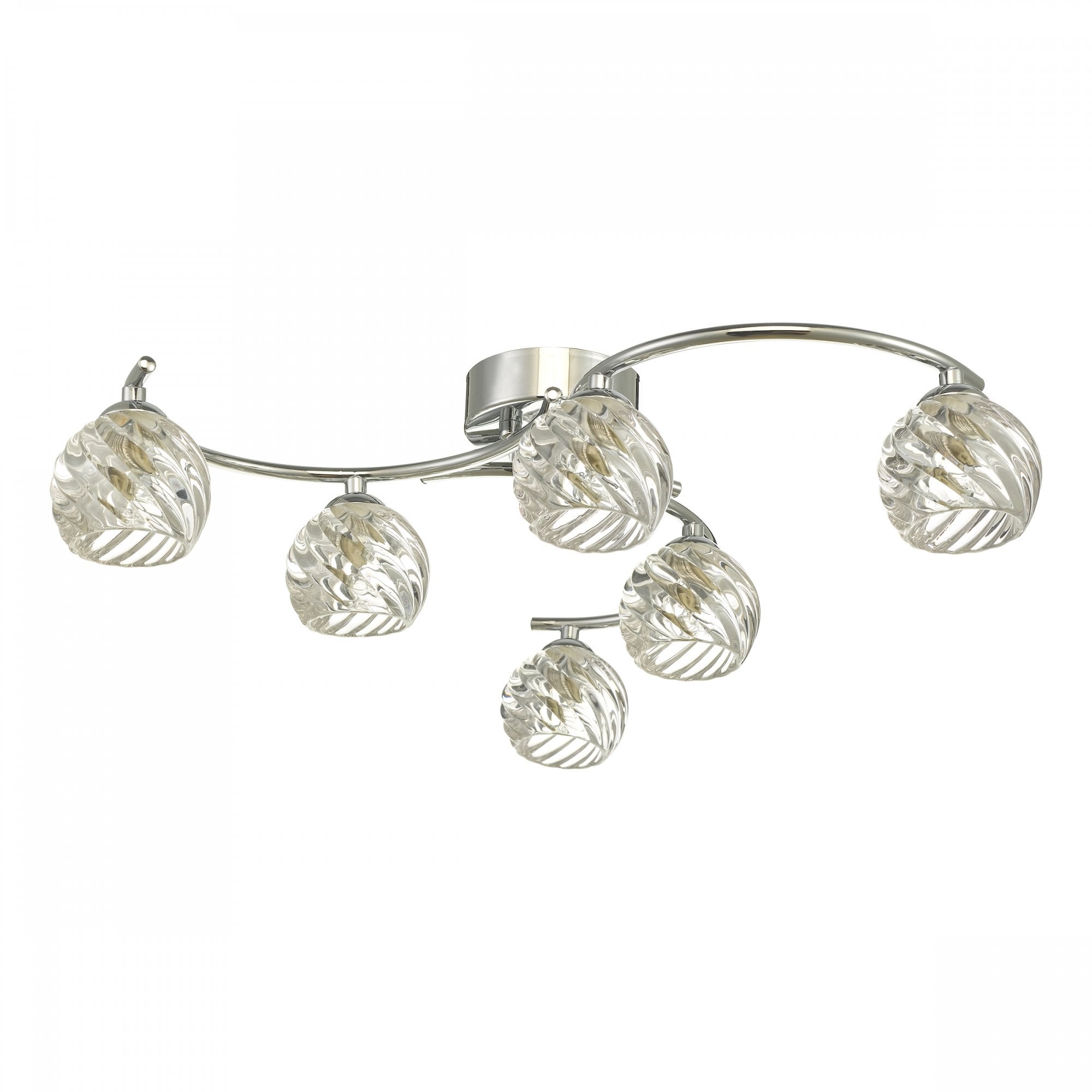 The Nakita 6 light semi flush ceiling light in polished chrome and clear glass shades. The heavy glass pressed glass shades of the Nakita semi flush ceiling light have twisted pattern that flows with the arms and gives an interesting and beautiful lighting effect when on and still glistens in ambient light when off. The polished chrome finish is our most popular finish, it’s reflective finish looking great against any colourway.