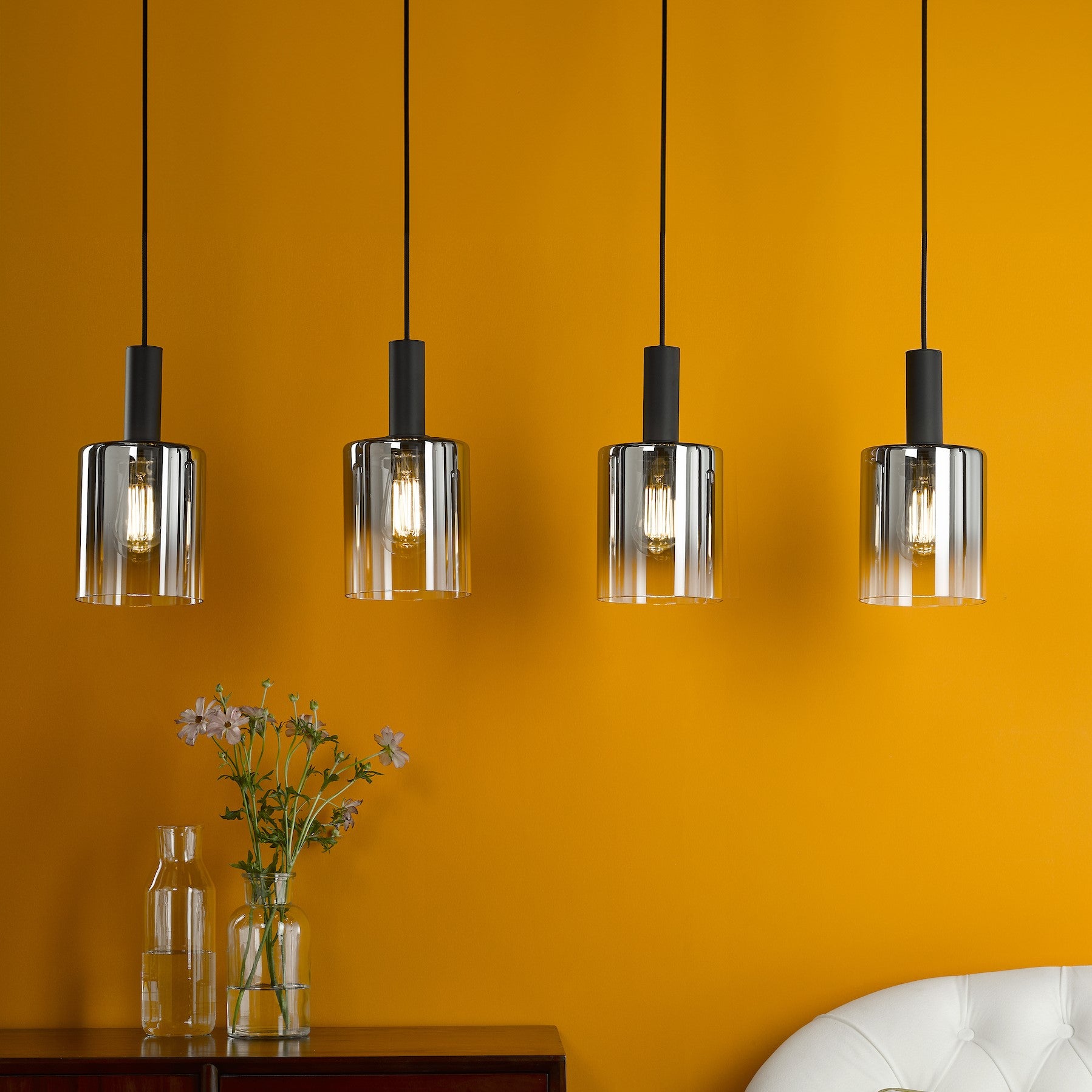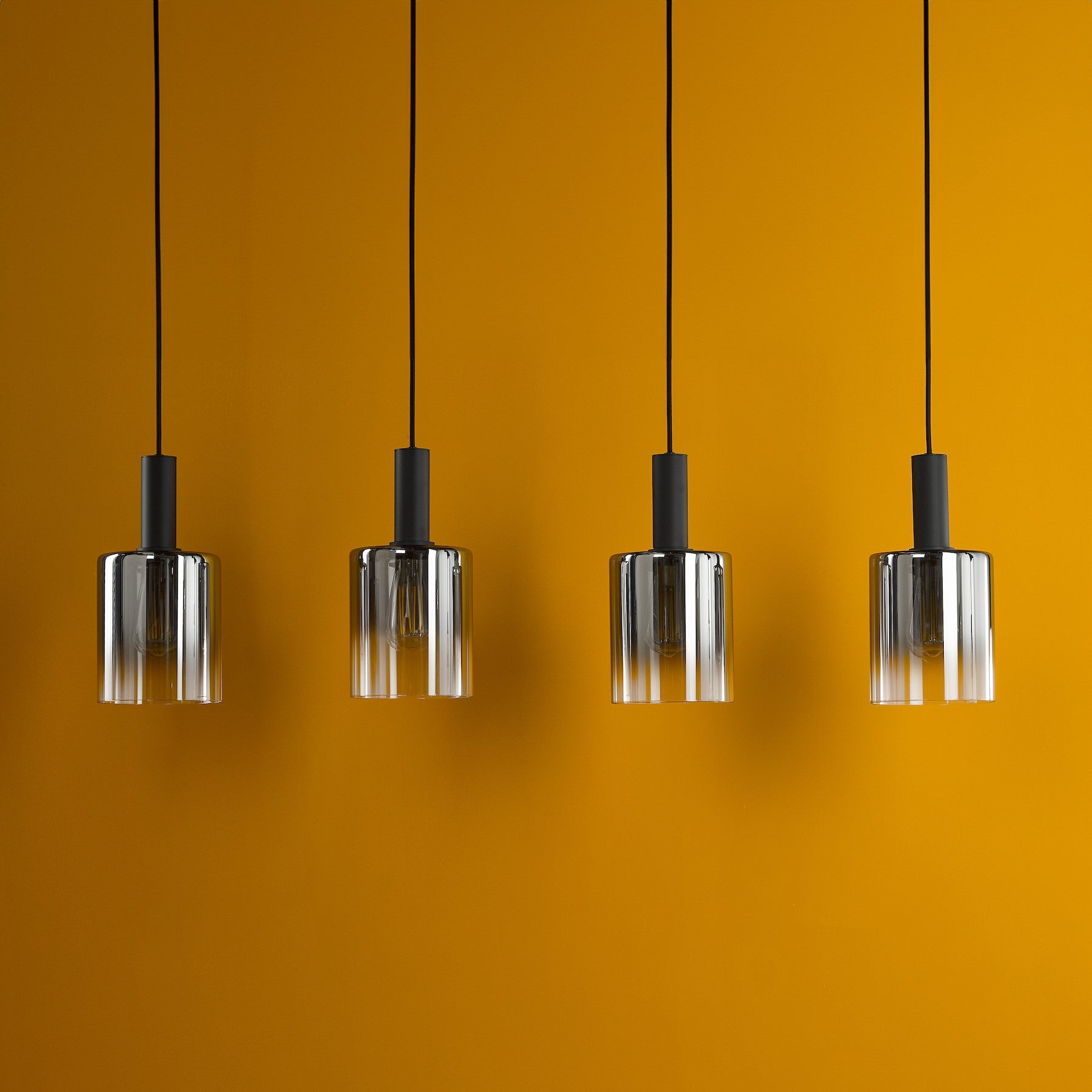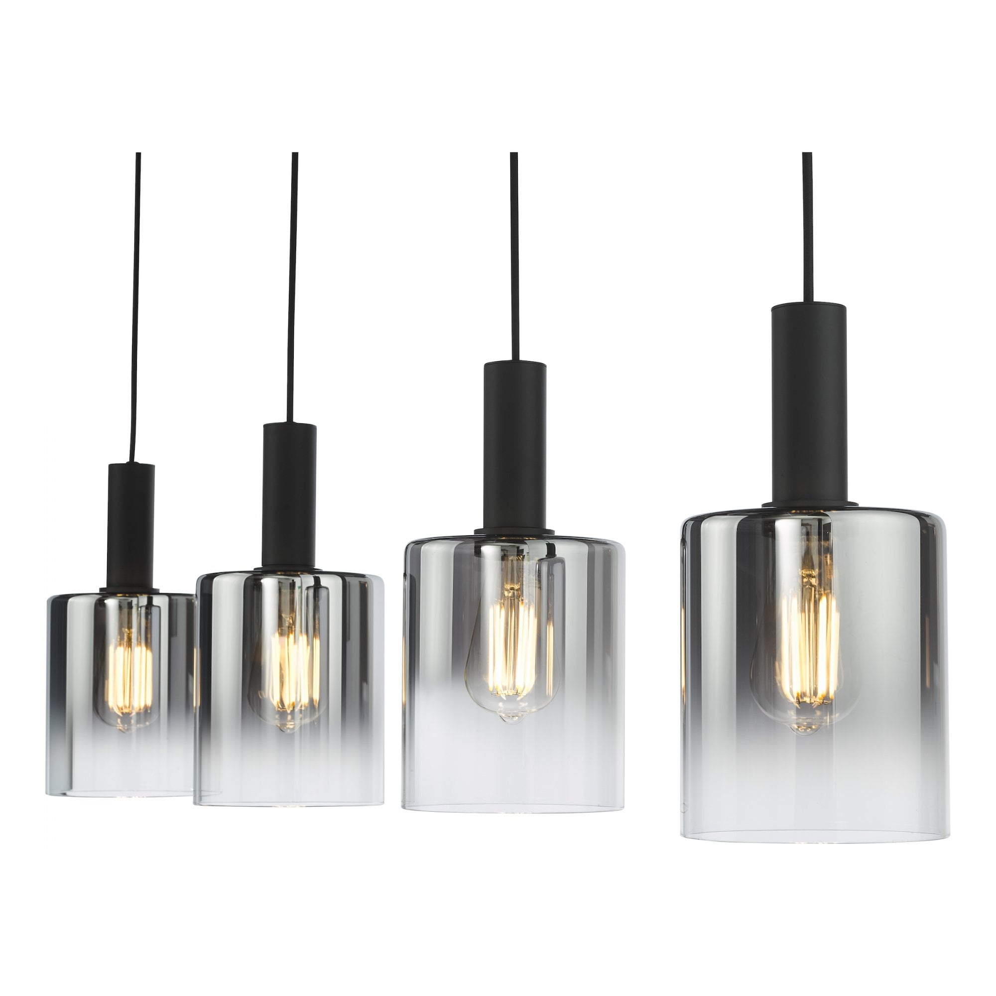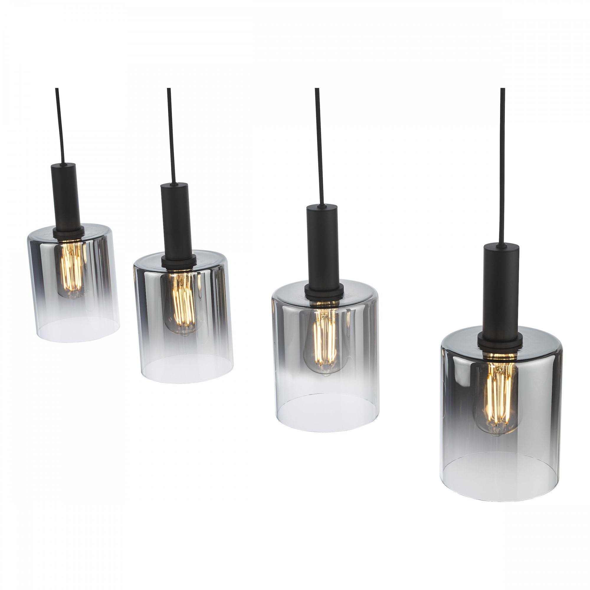 The captivating Savannah 4 Light Bar Pendant effortlessly combines contemporary design with a touch of glamour, instantly transforming any space into a stylish haven. The matt black frame beautifully contrasts with the ombre smoked glass shades, creating a visually striking aesthetic that will capture the attention of anyone who enters your home. The Savannah 4 Light Bar Pendant is perfect for illuminating larger areas such as kitchen islands or dining rooms, casting a warm and inviting glow that sets the mood for any occasion. Height is adjustable at the point of installation (33-133cm). Bulb not included, takes 4 x 40W max E27.