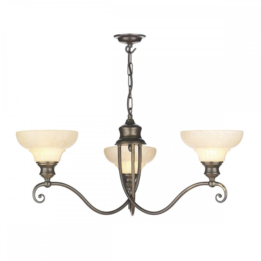 Stratford 6 Light Armed Pendant Aged Brass and Alabaster Glass