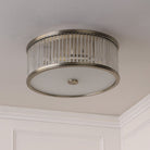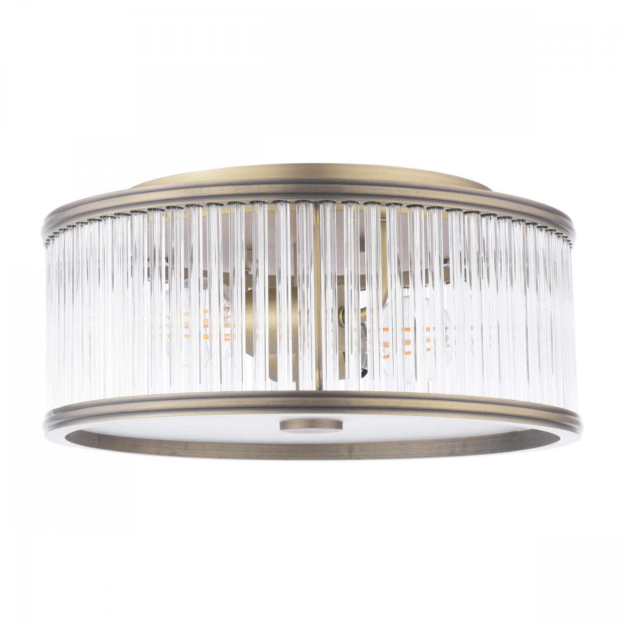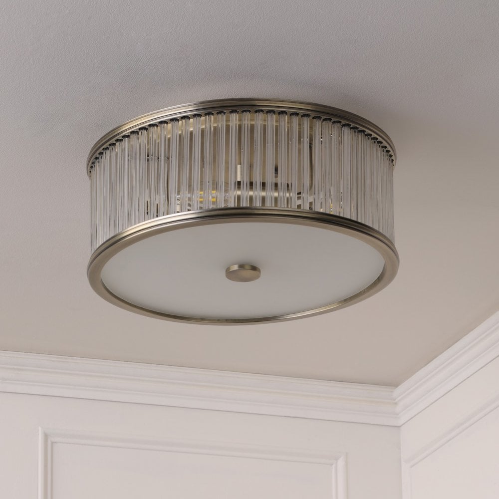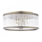 Sutton Flush Ceiling Light Antique Brass Frame & Ribbed Glass Shade