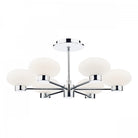 System Semi Flush Ceiling Light Polished Chrome White Glass Shades 6 Light