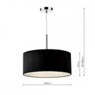 The ZARAGOZA 60cm 3lt Pendant has a polished chrome ceiling plate and comes complete with a black micro pleat shade and frosted acrylic diffuser.