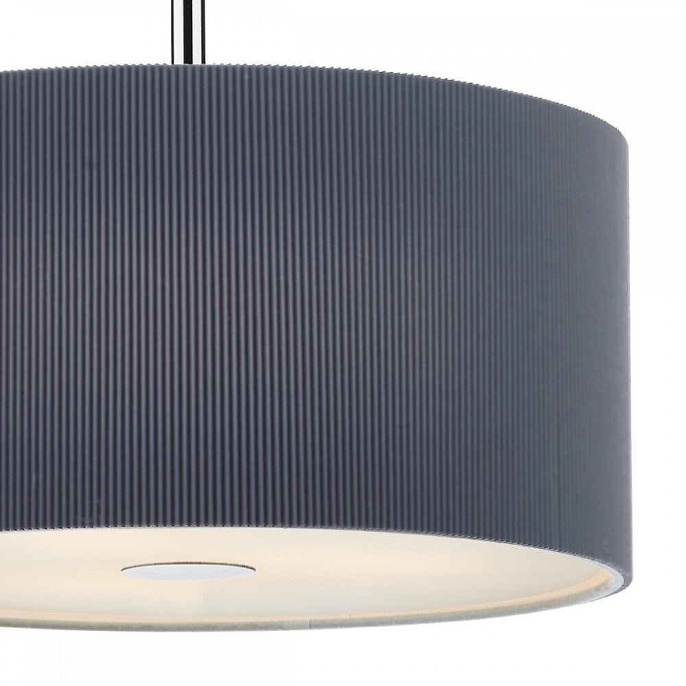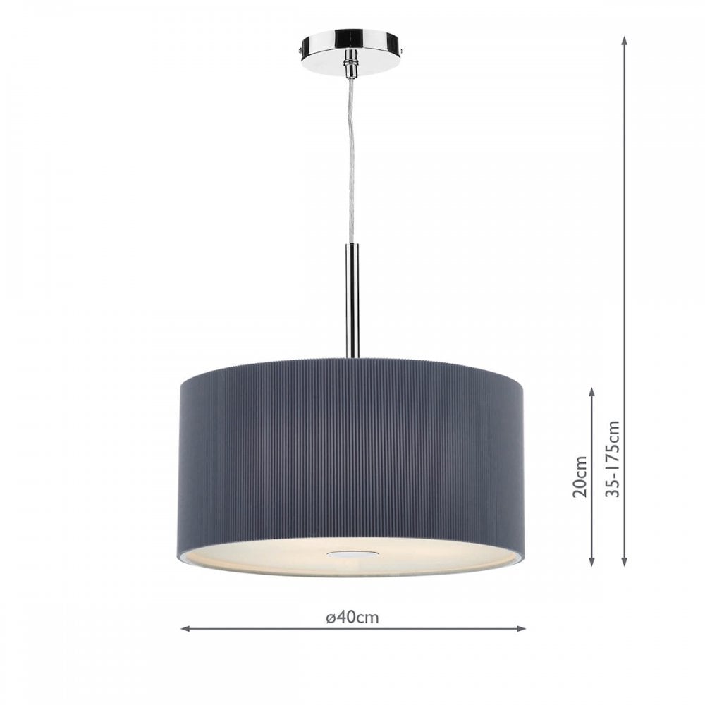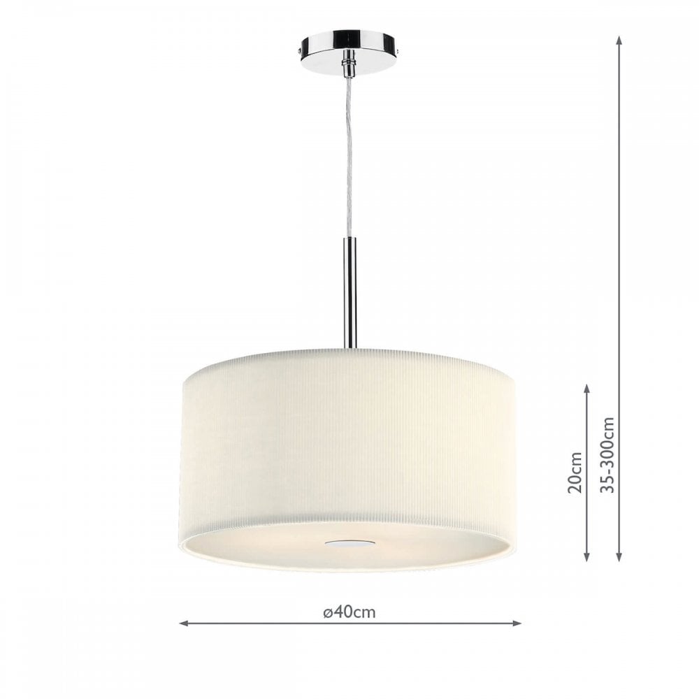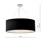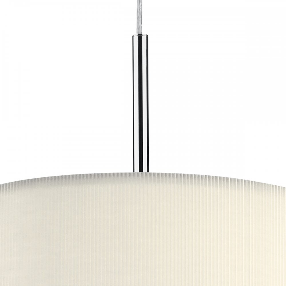 The ZARAGOZA 90cm 6lt Pendant has a polished chrome ceiling plate and comes complete with a black micro pleat shade with frosted acrylic diffuser.