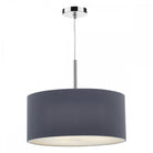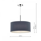 The ZARAGOZA 60cm 3lt Pendant has a polished chrome ceiling plate and comes complete with a grey micro pleat shade and frosted acrylic diffuser.