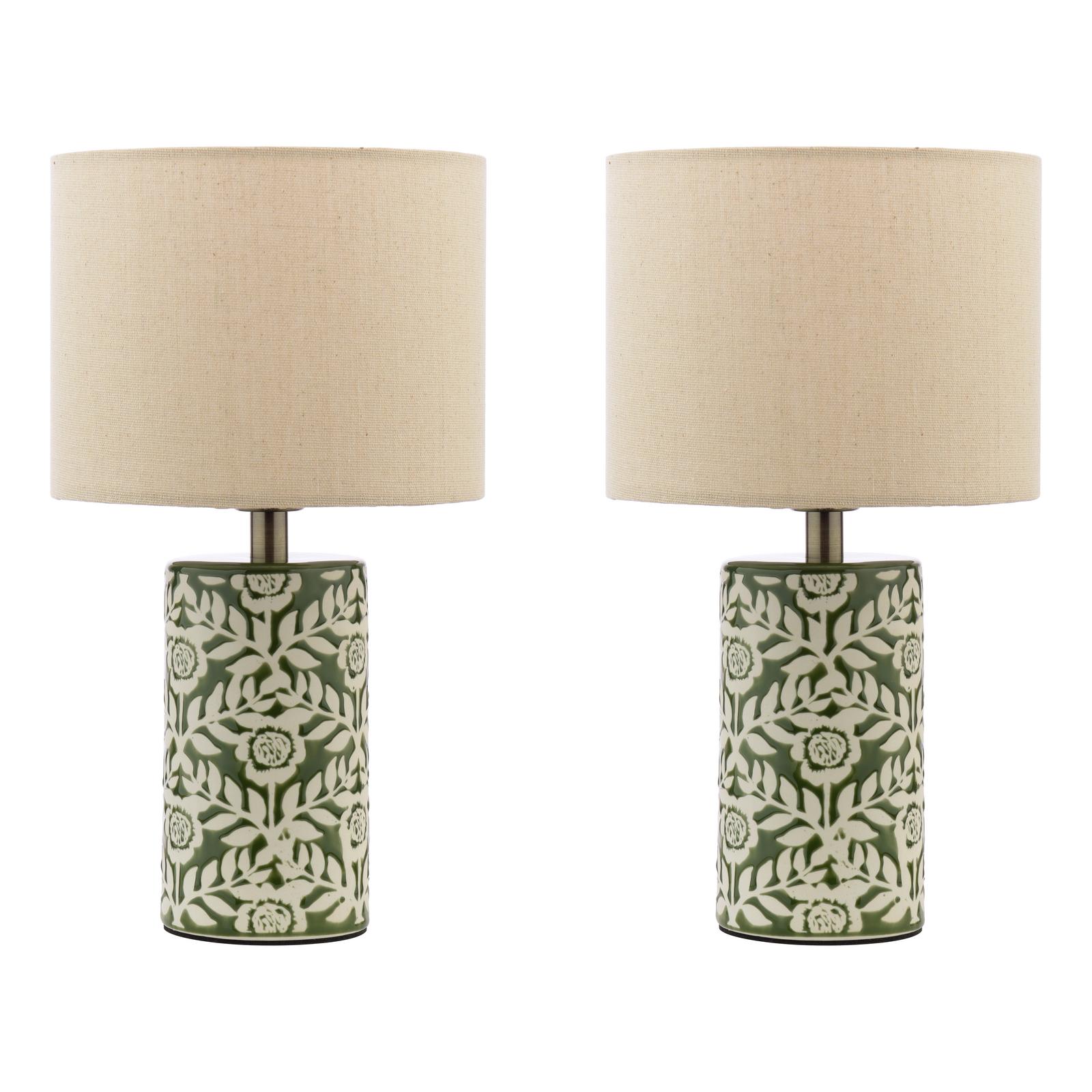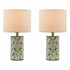 Highclere Twin Pack Table Lamp Green Ceramic With Shade