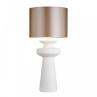 Our classic ALCHEMIST COLLECTION welcomes the return of the truly unique table lamp base, LUSTRE. This reimagining using our CHALKY WHITE finish really exaggerates LUSTRE's unmistakeable silhouette. Shown with an ALMOND CREAM and WHITE DRM40 shade, included.
