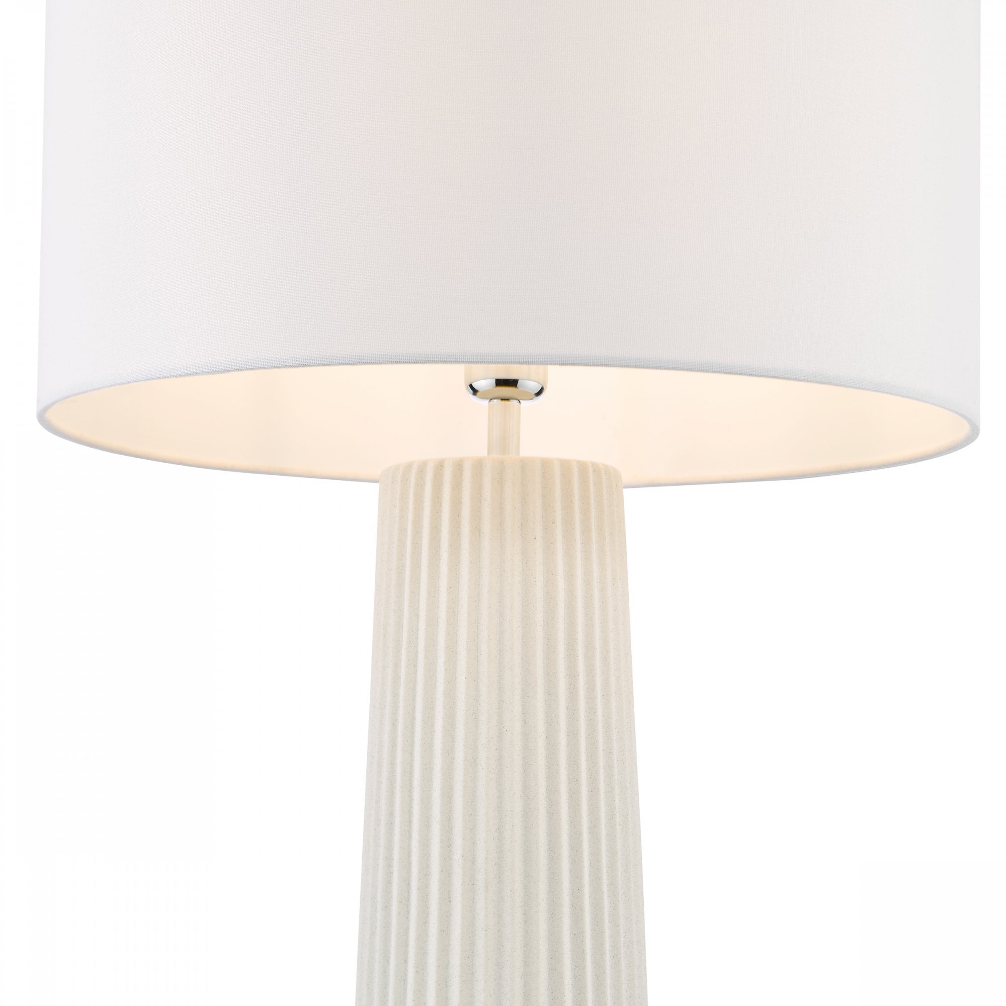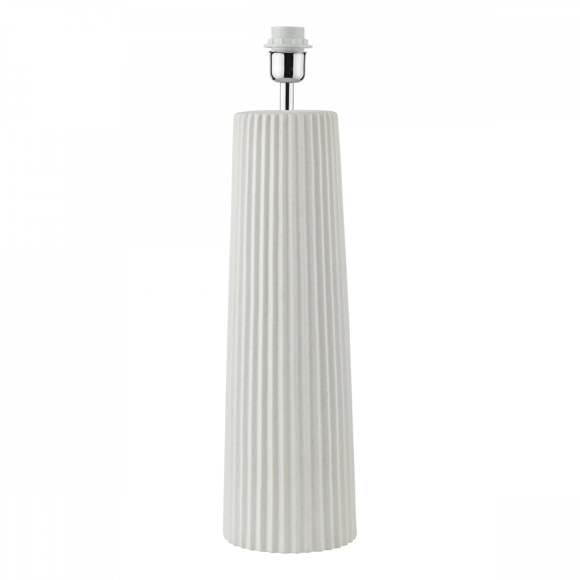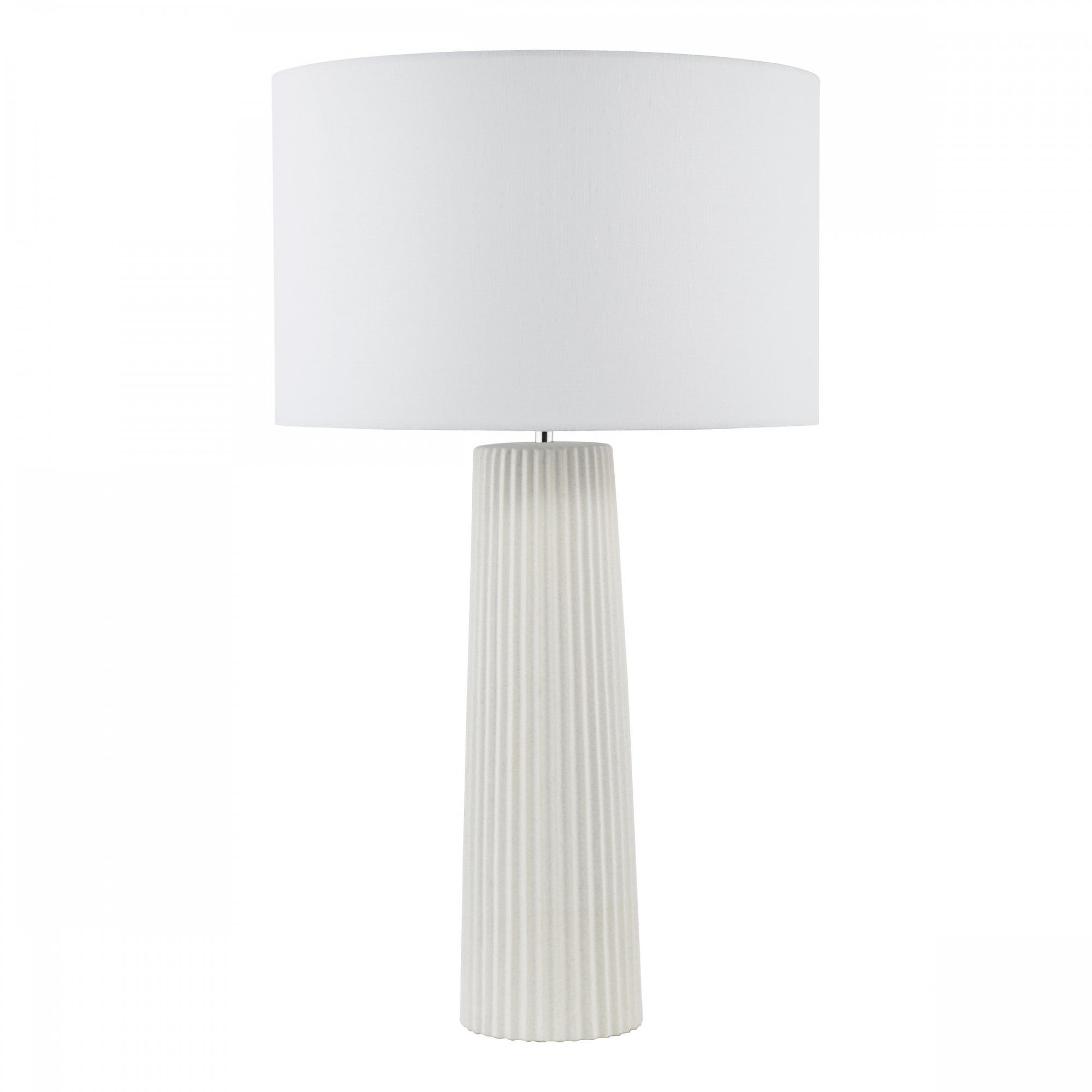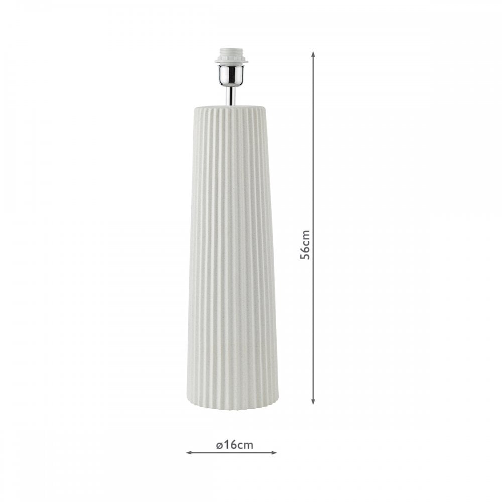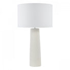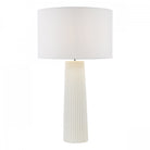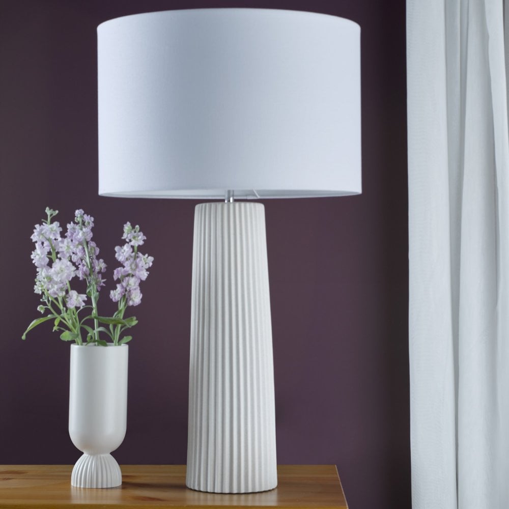 Elevate your space with the Myla table lamp from Dar Lighting, a large ceramic table lamp that demands attention. This extra-large white table lamp base boasts a tactile ribbed texture and matt glaze, perfect for making a statement in your lounge or hallway. The Myla's versatile design allows you to personalise your look - simply choose from our range of compatible shades (sold separately) to suit your style. With its generous size and eye-catching ivory white finish, this ceramic table lamp serves as both a practical light source and a striking decorative piece. An inline rocker switch adds convenience to this already impressive package. Transform your room with the Myla - where form meets function in spectacular fashion.