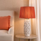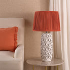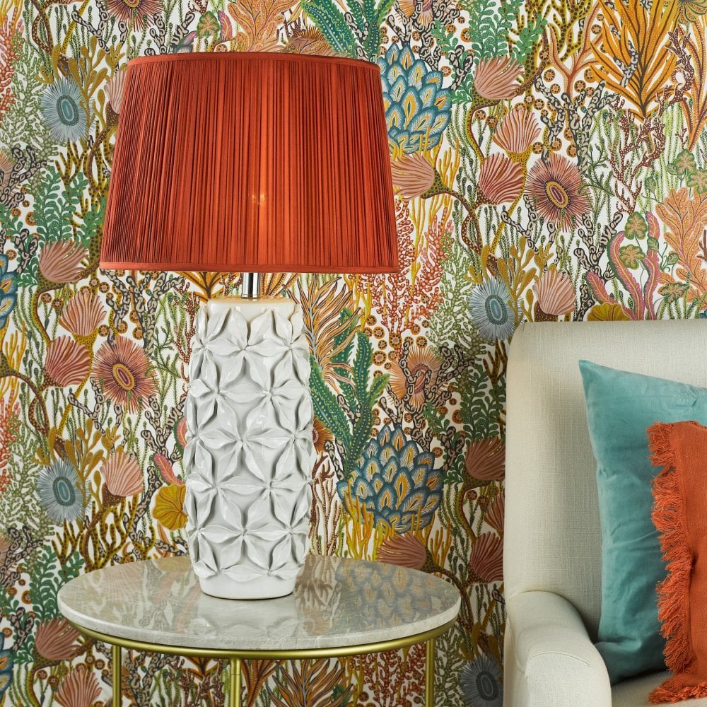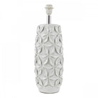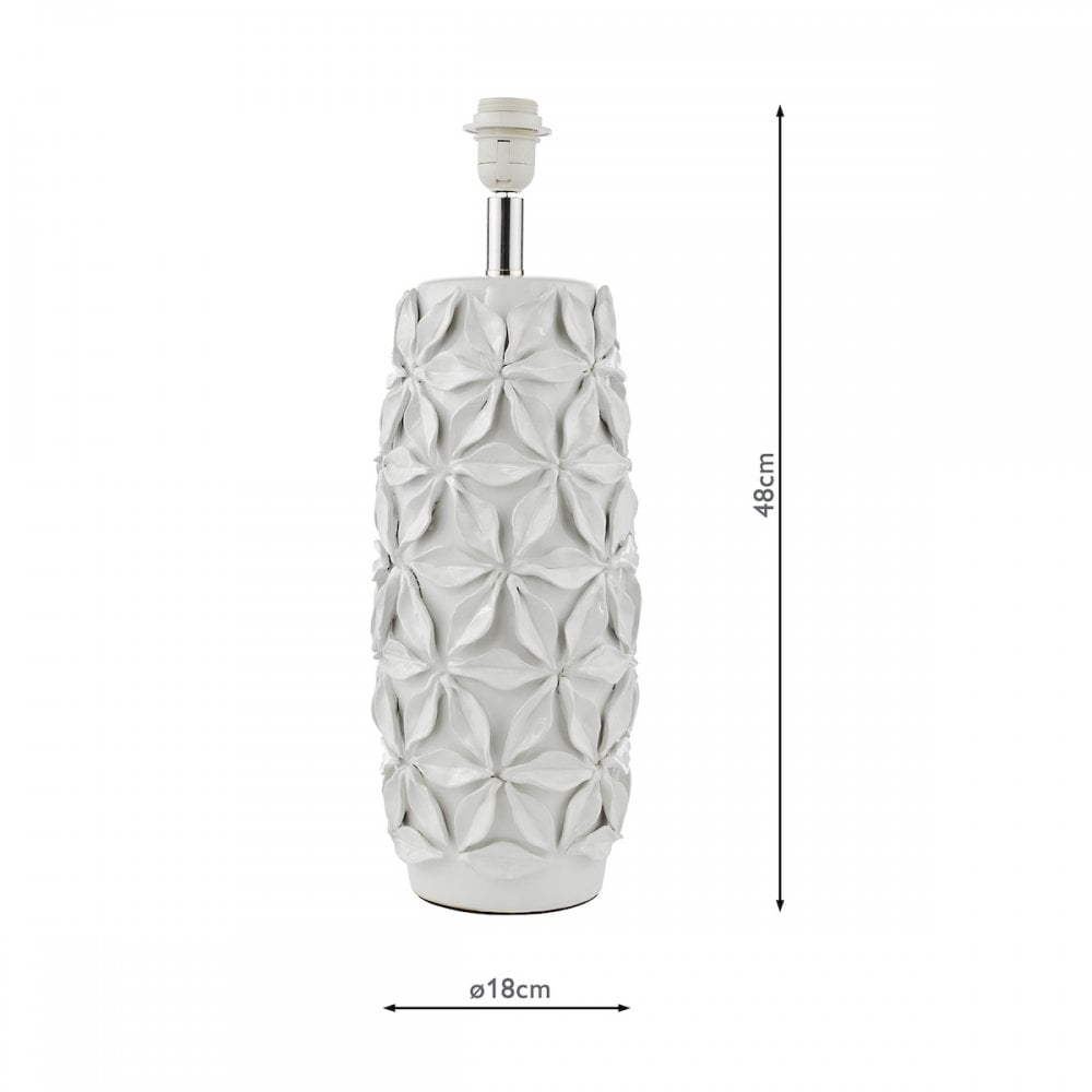 Illuminate your space with the artisanal charm of the Neus table lamp from dar lighting. This handmade ceramic table lamp base boasts a natural off-white hue, adorned with delicate hand-applied petals that add a touch of texture and intrigue. The contemporary design of this ceramic table lamp effortlessly complements a variety of interior styles, from minimalist to eclectic. Sold without a shade, the Neus invites you to unleash your creativity - simply pair it with a shade from our extensive range to create a bespoke lighting solution that's uniquely yours. Whether gracing a bedside table or adding ambiance to your living room, this versatile and handcrafted piece is sure to cast a warm glow on your home.