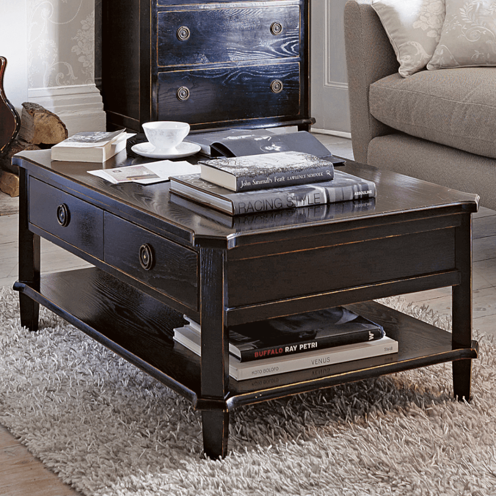 Black Henshaw 2 Drawer Painted Wood Coffee Table