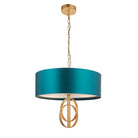 Aleena Double Hoop Gold Leaf 3 Light Pendant Light with Teal Shade