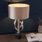 Aleena Double Hoop Silver Leaf Table Lamp with Mink Shade