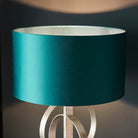 Aleena Double Hoop Silver Leaf Table Lamp with Teal Shade