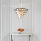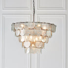 Create an ethereal presence with this exquisite chandelier featuring tiered layers of mercury glass discs. With an adjustable, antique silver chain and nine dimmable lights, this striking centrepiece is the perfect finishing touch. Pair with matching items from the range.