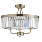 Felicity Round Antique Brass 3 Light Glass Semi Flush Light
