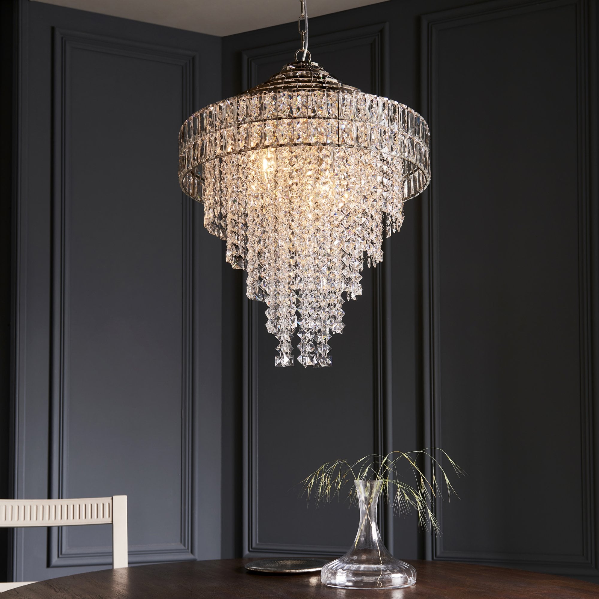 Gatsby Bright Nickel 7 Bulb Crystal Tiered Pendant Ceiling Light