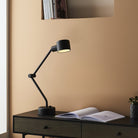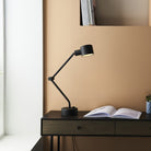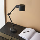 Industrial style designer task lamp with a textured black finish and machined knurled adjustable arm knuckle. The Hutch also has a rotational head, easily accessible on/off switch and a 1.5 metre black fabric flex & plug.