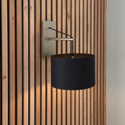 Matt nickel plated stem with black finished base with a black cotton fabric shade with matching liner. Perfect for use with an E14 LED lamp.