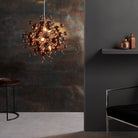 Jodie Copper Plated 9 Light Pendant Light with Tinted Glass Spheres