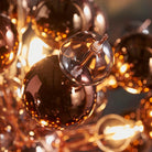Make a dramatic statement with this spectacular, mirror bomb light fitting embellished with glossy smoked glass and metallic plated balls. This stunning, nine-light pendant features an explosion of shiny glass spheres, creating an atmospheric glow and striking shadow patterns.