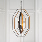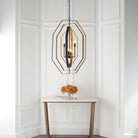 Make a sculptural statement with this dramatic ceiling light featuring a series of octagonal bronze and gold cages. With four upright bulbs at its heart, this timeless, geometric pendant is suspended from an adjustable chain.
