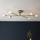 Miley 6 Light Multi Arm Satin Brass Semi-Flush Light Clear Ribbed / Frosted Glass