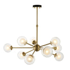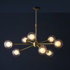 Miley 9 Light Multi Arm Satin Brass Pendant Light & Clear Ribbed / Frosted Glass