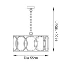 Brushed gold painted finish metal work and white fabric cylindrical shade with colour matching liner. Height adjustable 1.5 metre chain and clear cable. Perfect for use with E14 LED lamps.