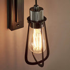 Matt black painted metal work with black chromed machine knurled details. Easy reach on/off toggle switch. Twin with E27 LED filament lamps for that unique 'on trend' look.