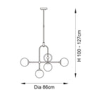 Matt antique brass metalwork with beautiful opal glass shades. Height adjustable stem. Perfect for use with E14 LED lamps.
