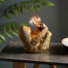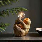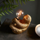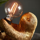 A quirky sloth table light exclusively designed in the UK, in a vintage gold paint finish. Characteristic features come to life when paired with a lamp.