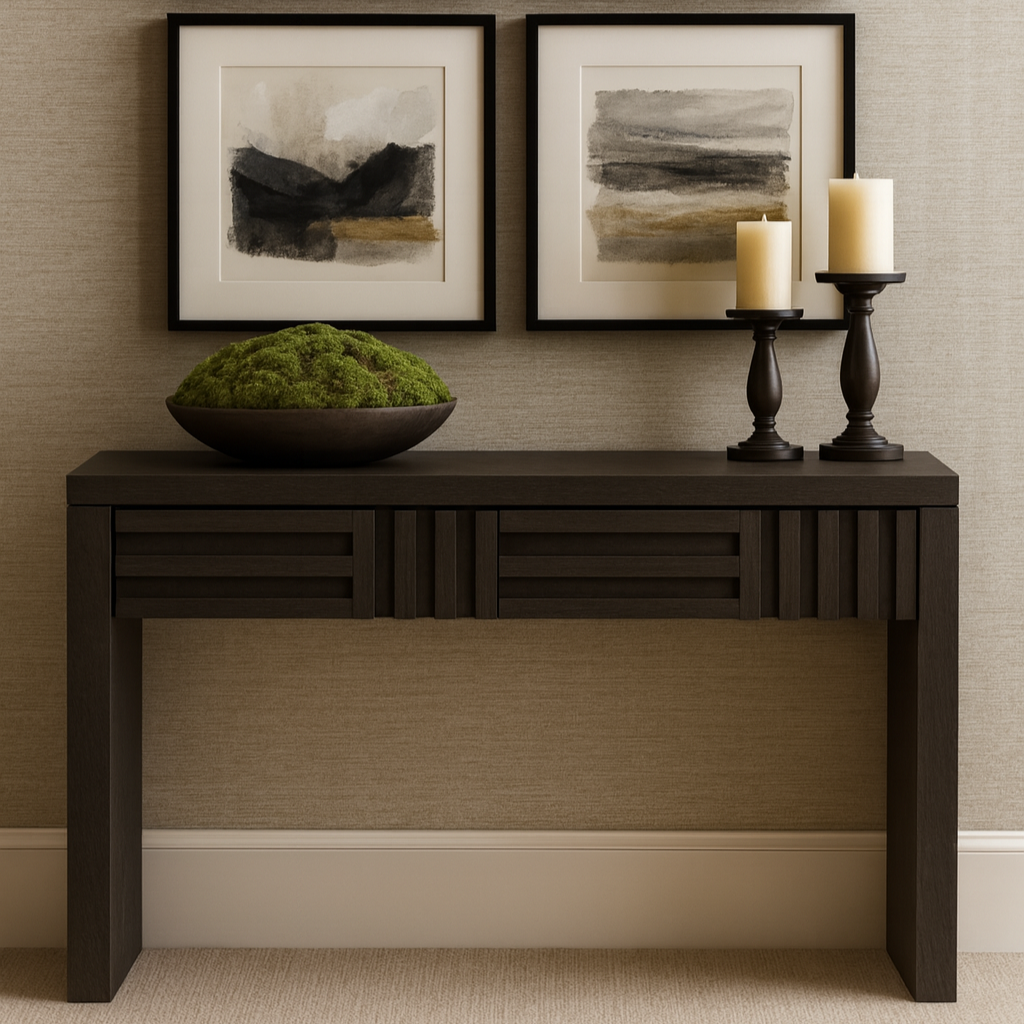 Enhance an elegant entrance space with the Kyoto Console Table, conceal keys and other possessions in the two concealed drawers.