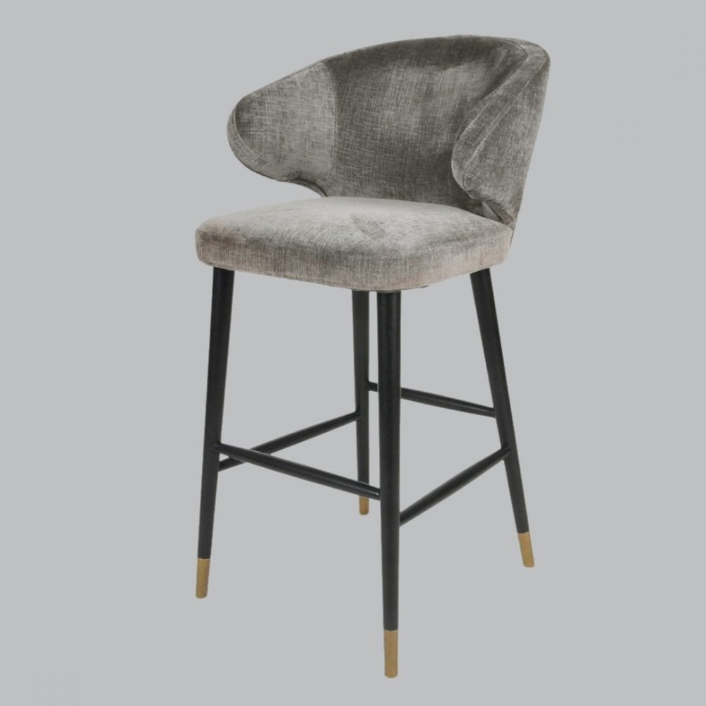 The Vance Bar Chair is upholstered in a beautiful mouse chenille fabric, adding texture to a room. This chair has brass finish trimmed legs to create a bar stool, which will grace many interior bars.
