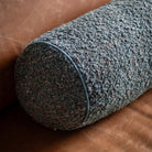 A soft boucle bolster cushion with subtle multi coloured flecks running through the weave and contrast pipe detailing.