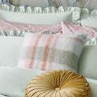 The Laura Ashley Colton check cushion is a luxuriously soft wool mix cushion with a cosy brushed finish. Woven in tones of sage, mint, apricot and pink, this cushion is a perfect way to create a warm and inviting space in your home. This lovely cushion comes with a feather pad included.