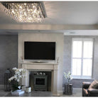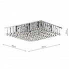 The 80cm squared ABACUS 8lt Flush fitting makes a bold statement. It features a multitude of clear crystal glass droppers and comes fully assembled for efficient installation.