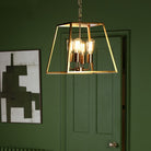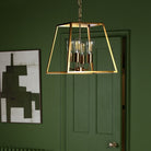 The Academy 4 Light Lantern ACA8635 is an elegantly tapered square lantern-style pendant in a natural brass finish (no glass). Including a mirrored plate in the top to create a floating illusion, this fitting would add a unique touch to any contemporary décor.