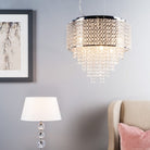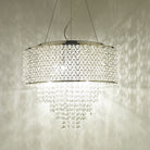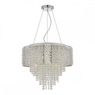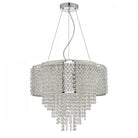 The Acelynn 6 light chandelier is a cascading crystal pendant surrounded by a crystal encrusted polished chrome ring. Creating an opulent centre piece, this fitting would make a stunning focal point in any living space.